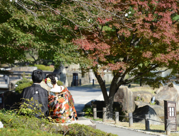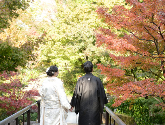 こんばんは、エーセクト武藤です!紅葉を満喫した和装ロケーション撮影をご紹介します!徳川園にて…